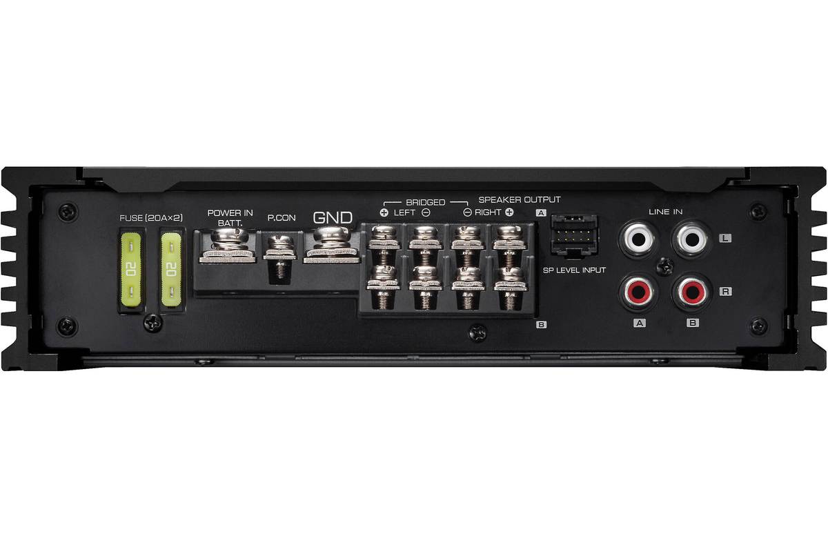 Kenwood’s Excelon X302-4 four-channel amplifier delivers 50 watts RMS per channel, yet still fits almost anywhere in your vehicle. Switch this amp over to bridged, 2-channel mode, and you can power a pair of high-performance speakers or subs with 150 watts RMS each. In 3-channel mode, you can use the amp’s front channels to drive a pair of speakers with 50 watts each, and bridge the rear channels to send 150 watts to a sub.